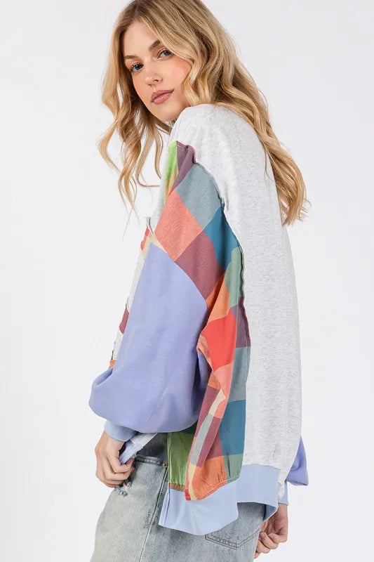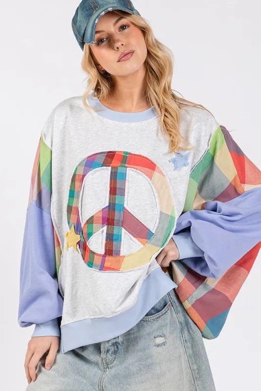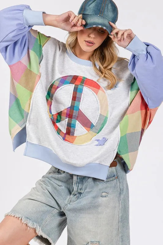 Contrast Peace Patch Dropped Shoulder Sweatshirt is a comfortable and stylish sweatshirt. The unique peace logo patch contrasts with the main body of the clothing, adding interest and uniqueness to the design. The sagging shoulder line design brings loose and comfortable wearing experience, suitable for casual daily collocation. This sweatshirt is the ideal combination of fashion and comfort.